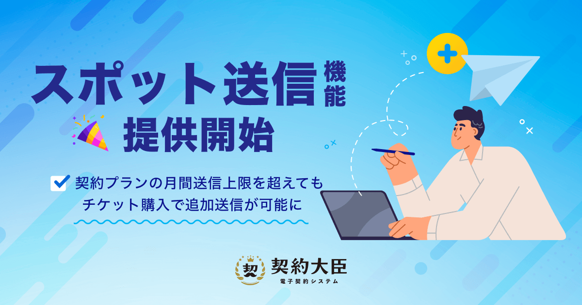 電子契約サービス「契約大臣」、契約書の月間送信上限を超えても追加送信が可能な「スポット送信機能」の提供を開始