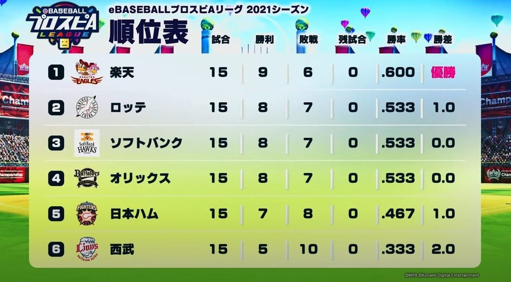 NPB・KONAMI 共催「eBASEBALLプロスピAリーグ」2021シーズン eペナントレースの優勝チームが決定!