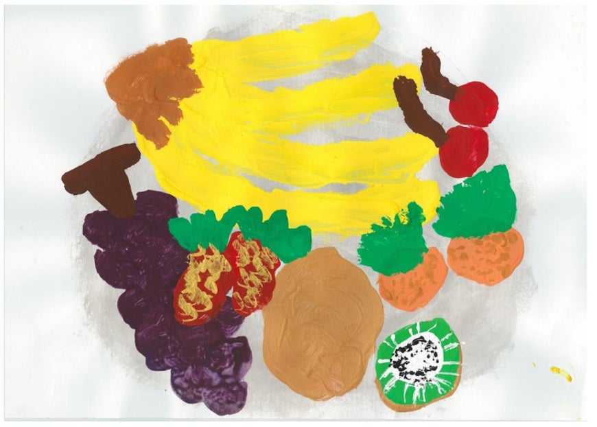 「福島県は果物王国でもあり、新鮮なおいしい果物が様々あったので、それを頭に浮かべながら足で描きました」