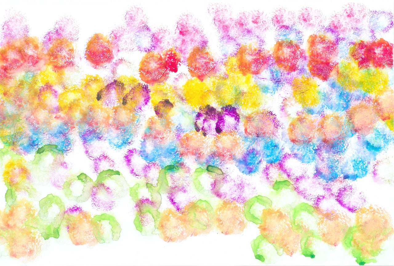 福島県出身・在住。森さんは脳性麻痺のために手足にこわばりがあり、車椅子に乗りながら、主に右足の指で筆を握って描きます。