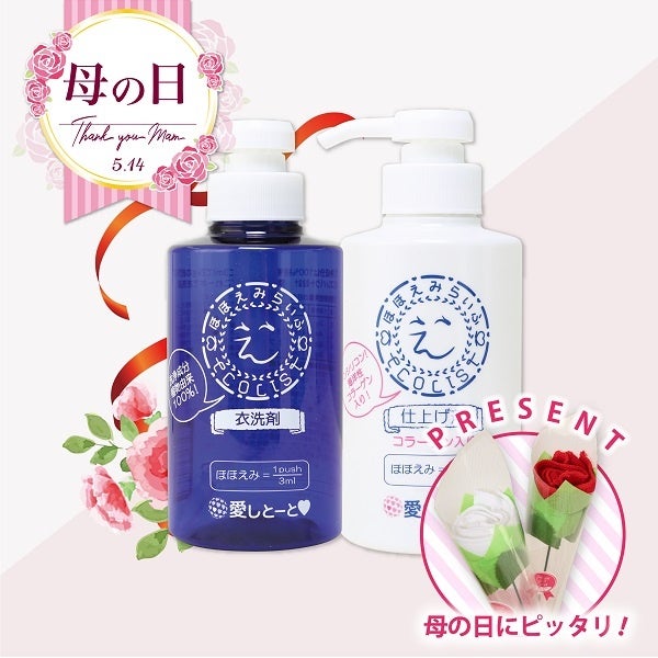 100%植物由来の洗浄成分(※2)で海にも環境にも優しい洗濯洗剤と柔軟剤の「エコリスト」。毎日使うものだから、安心できる優しい成分にこだわったものを使って欲しい。母の日にぴったりのフラワータオル付き。ギフトシールを袋に貼りラッピングしてお届けします。