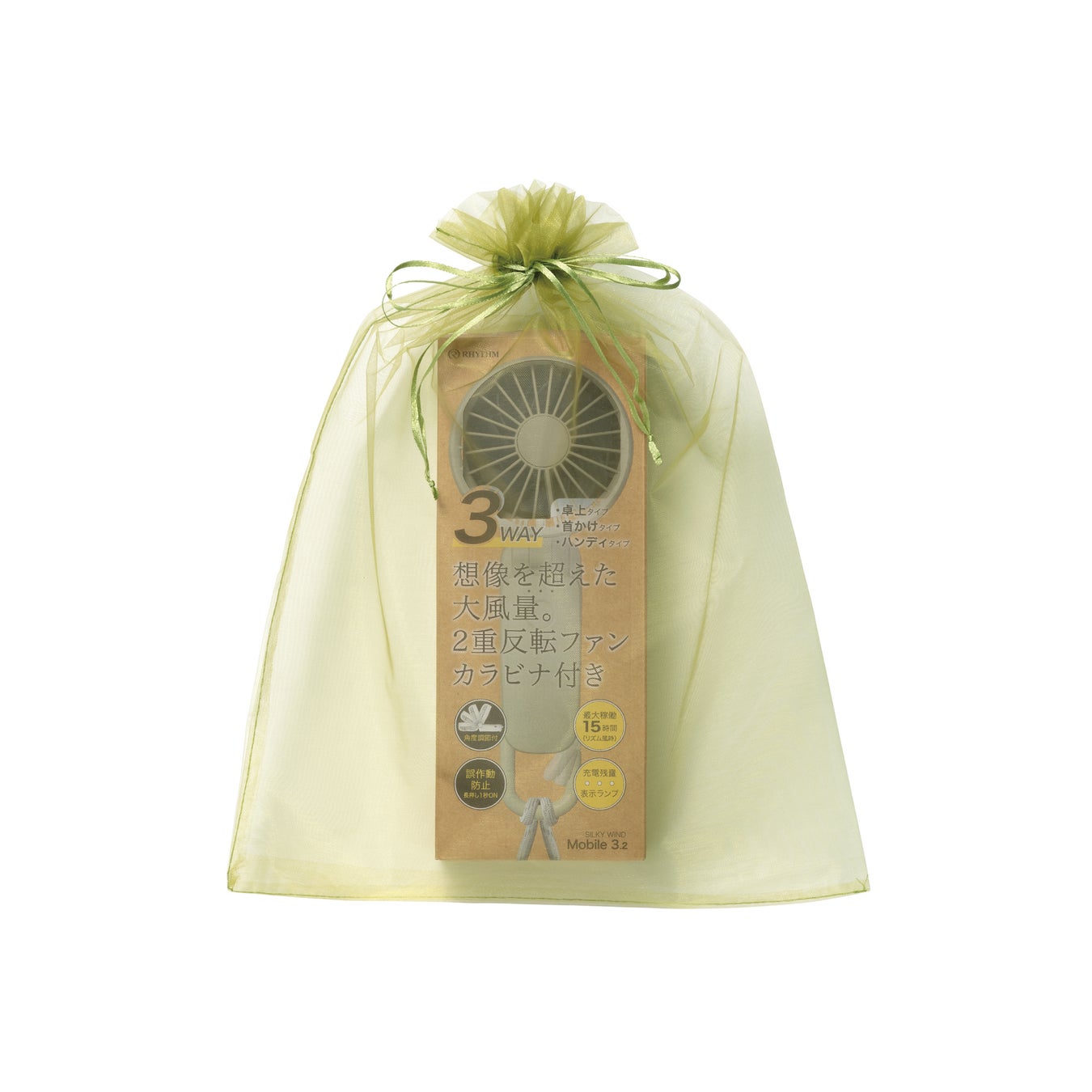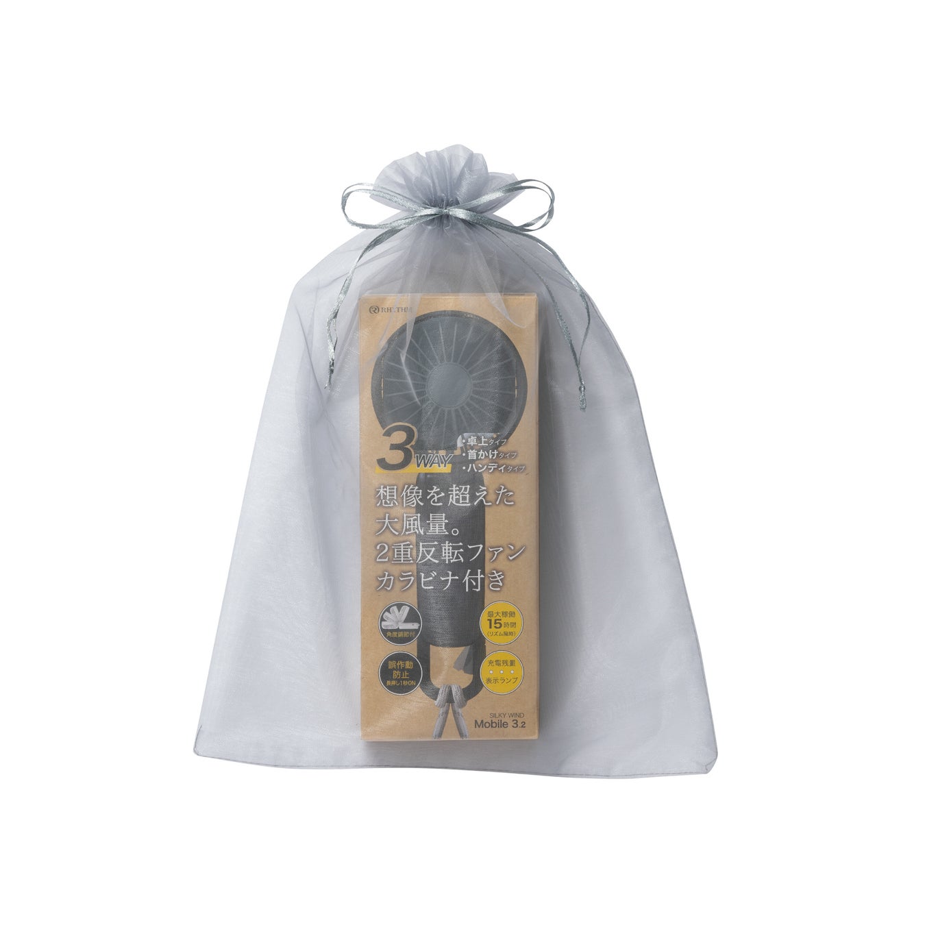 「Silky Wind Mobile 3.2」とメッセージカードを透け感のあるオーガンジー生地のバッグで包んだギフトセットです。メッセージカードは5種類からシーンに合わせて選ぶことができます。