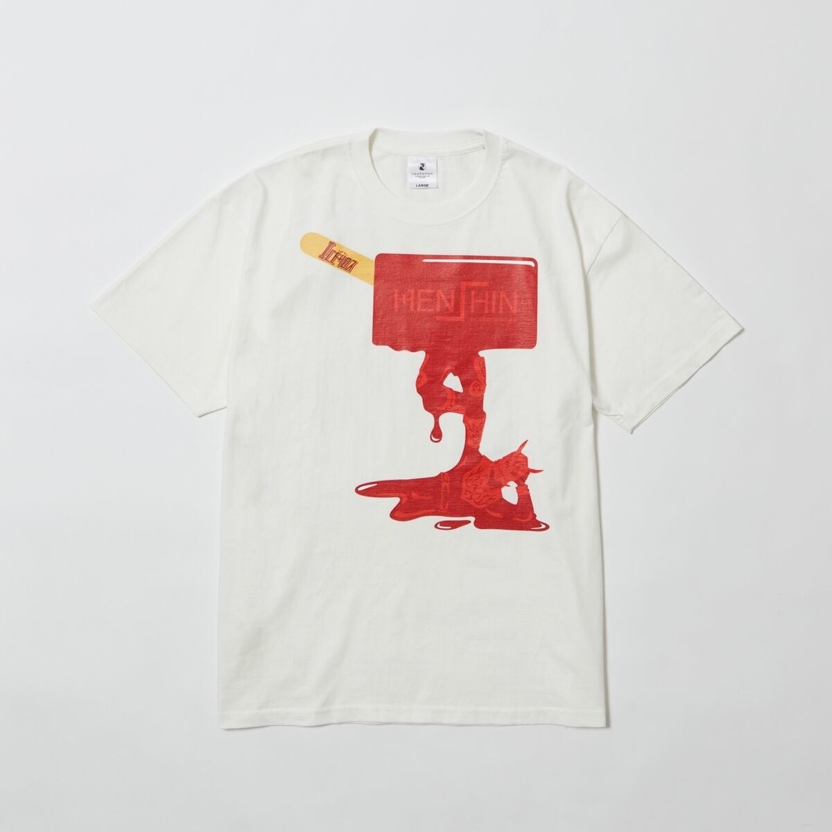 TシャツはLサイズとXXLサイズの2サイズ展開で、ざっくりとリラックスコーディネートが出来る大きさをご用意。キャップと同じマークデザインに加え、アイスキャンディの溶ける様とモモタロスの登場シーンを掛け合わせたオリジナルデザインも展開。生地色をあえて活かしたプリント手法で、こちらもビンテージテイストに仕上げています。