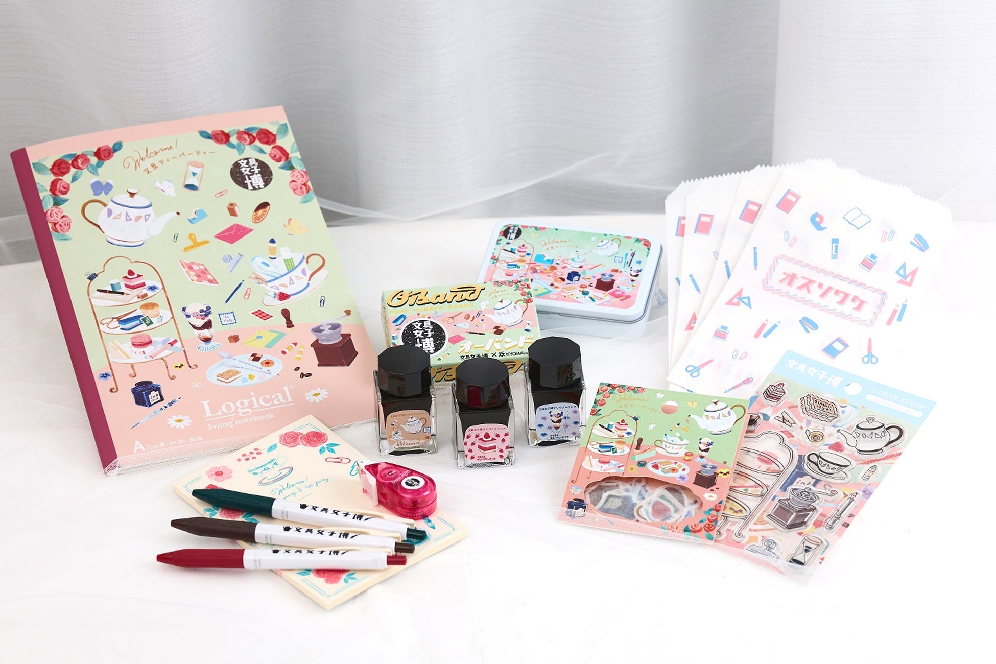 文具好きなあなたを“文具ティーパーティー”にご招待♪文具メーカーとコラボしたオリジナルグッズはすべて文具女子博でしかゲットできない限定品!ご来場の記念やお土産にオススメです!