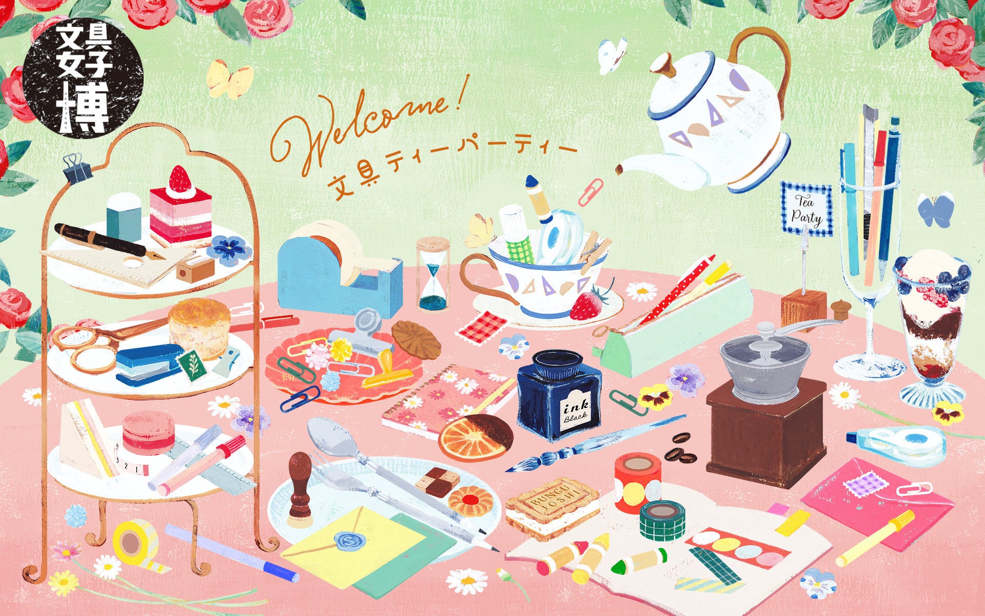 ①開催テーマは「Welcome! 文具ティーパーティー」