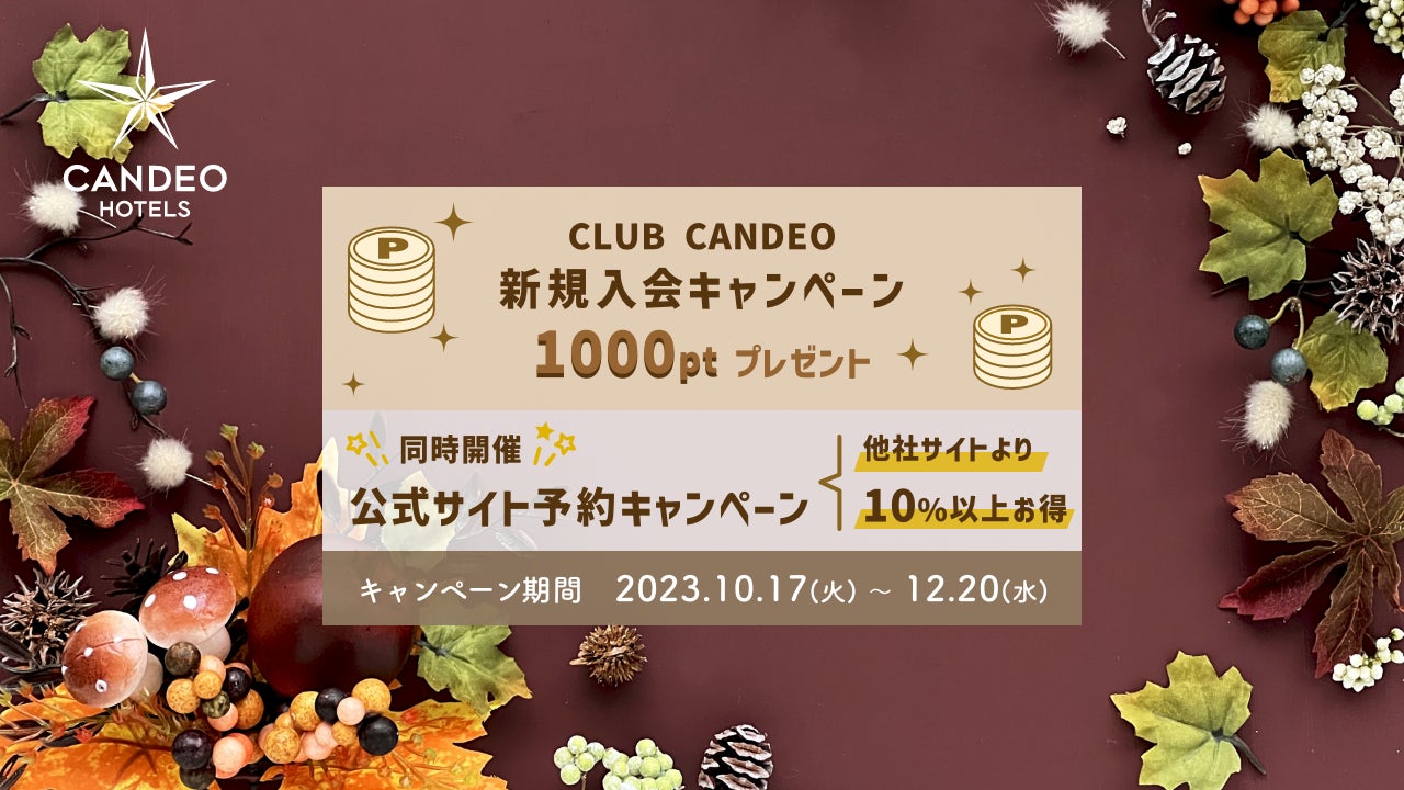 カンデオホテルズ独自の会員制度「CLUB CANDEO」新規入会の方に1,000ポイント贈呈!2023年10月17日(火)午前10時より開始