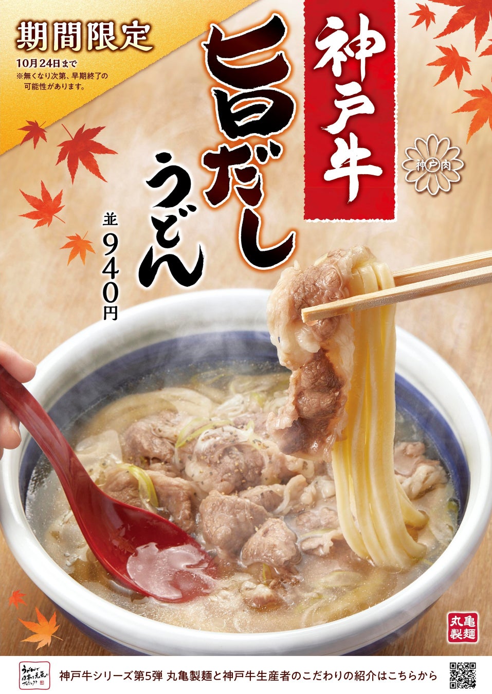 大人気“神戸牛シリーズ”第5弾!丸亀製麺と神戸牛生産者のこだわりの一杯 手づくり・できたてのうどんに絡む、神戸牛の旨みたっぷりのだしを感じる幸福感 数量限定『神戸牛 旨だしうどん』新登場