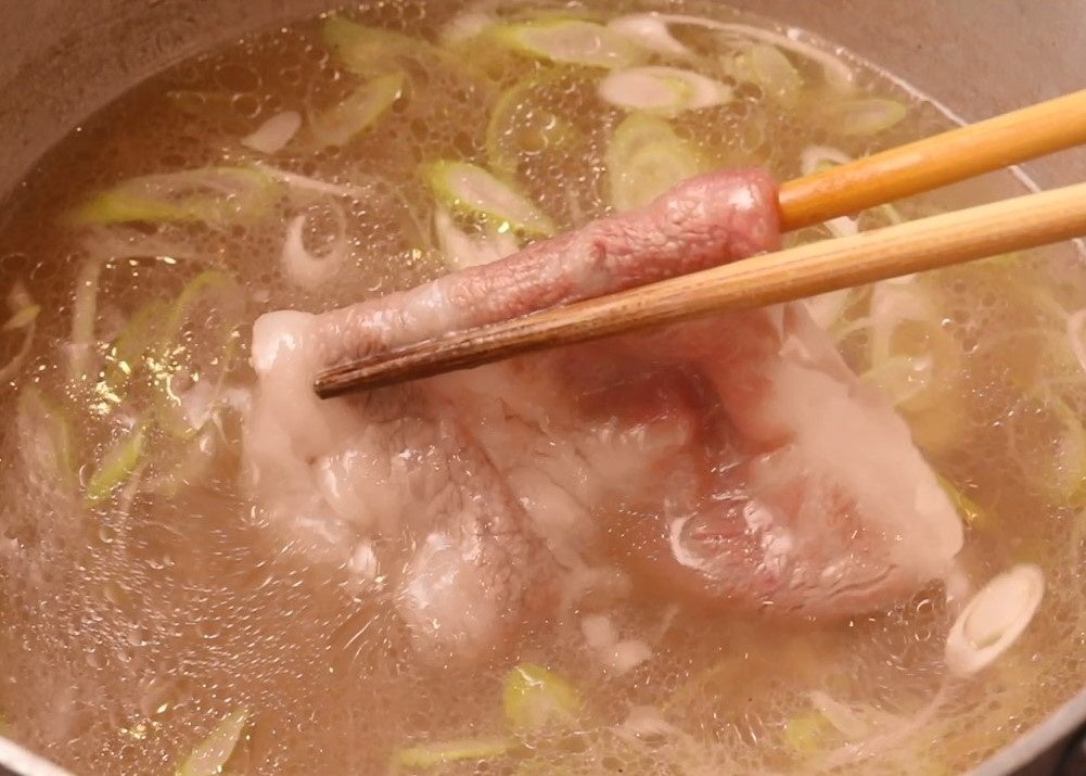 牛の旨みがたっぷり詰まったコク深い味わいの特製だしは、神戸牛の旨みを余すところなく感じられるように仕立てました。白ねぎは、シャキっと食感のアクセントをもたらします。仕上げに振りかける黒こしょうで、甘みのある神戸牛のだしが引き締まり、最後の一滴まで神戸牛の旨みをご堪能いただけます。