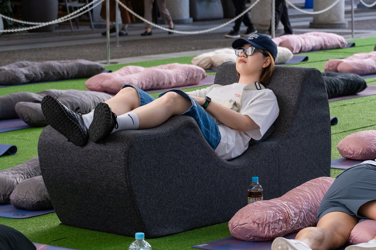 【ぼーっとする大会 in 大阪・関西万博 よしもとwaraii myraii館】にて無重力空間にいるようなリラックスチェアで来場者をサポート!