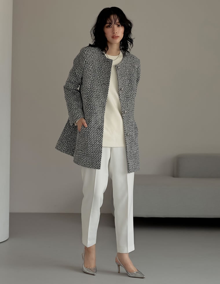 明るい未来を思い描くようなポジティブなムードを感じさせるカラーでもある、シルバー&ゴールド。 今季も引き続きトレンドのツイードジャケットのボタンには、程よく目を引くシルバーやゴールドのボタンをあしらいました。