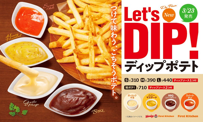 お客様の声に応えディップソースバーが形を変えて帰ってくる!新レギュラーメニュー「ディップポテト」販売開始!ポテト進化宣言! 3/23(木) 4種のディップソースをラインナップ