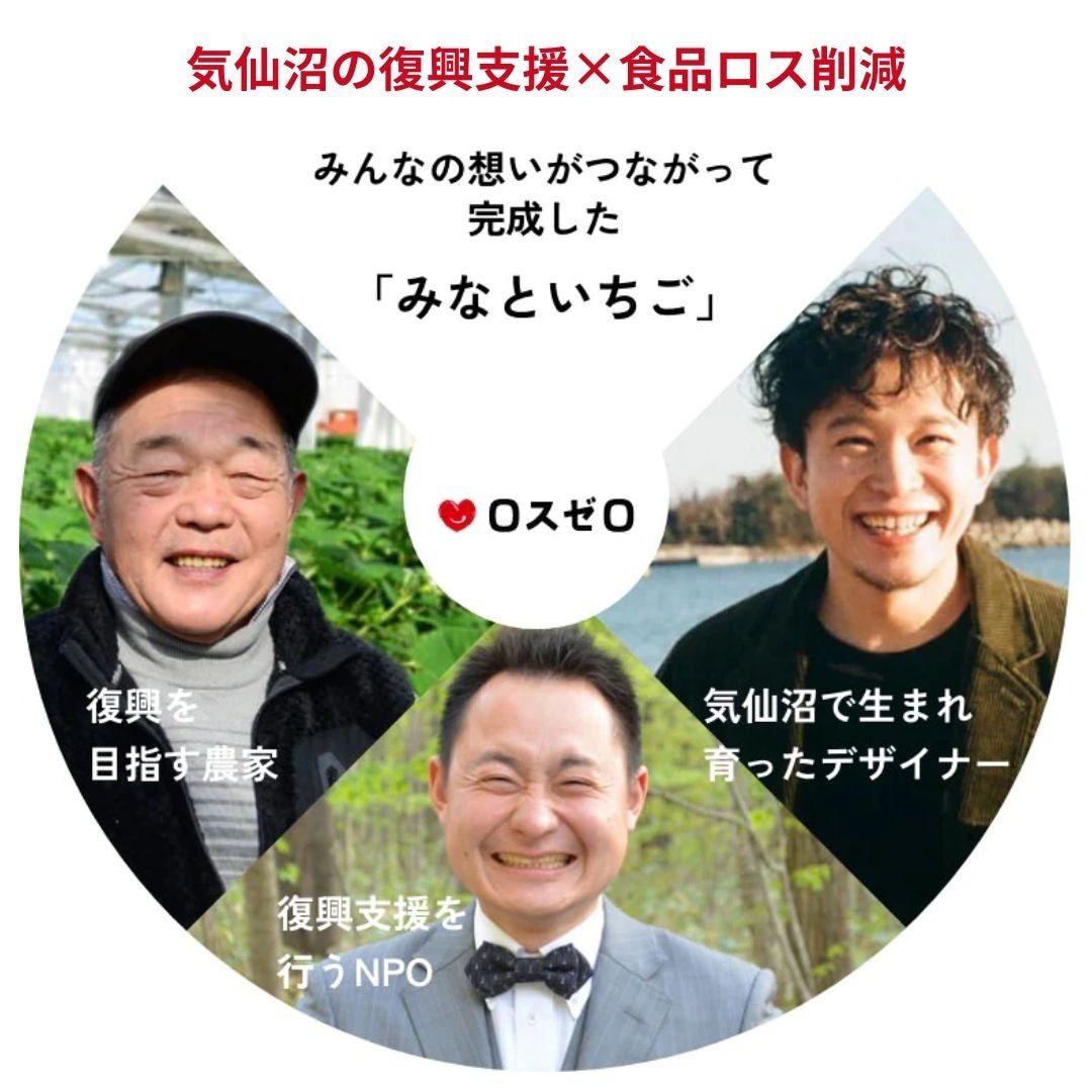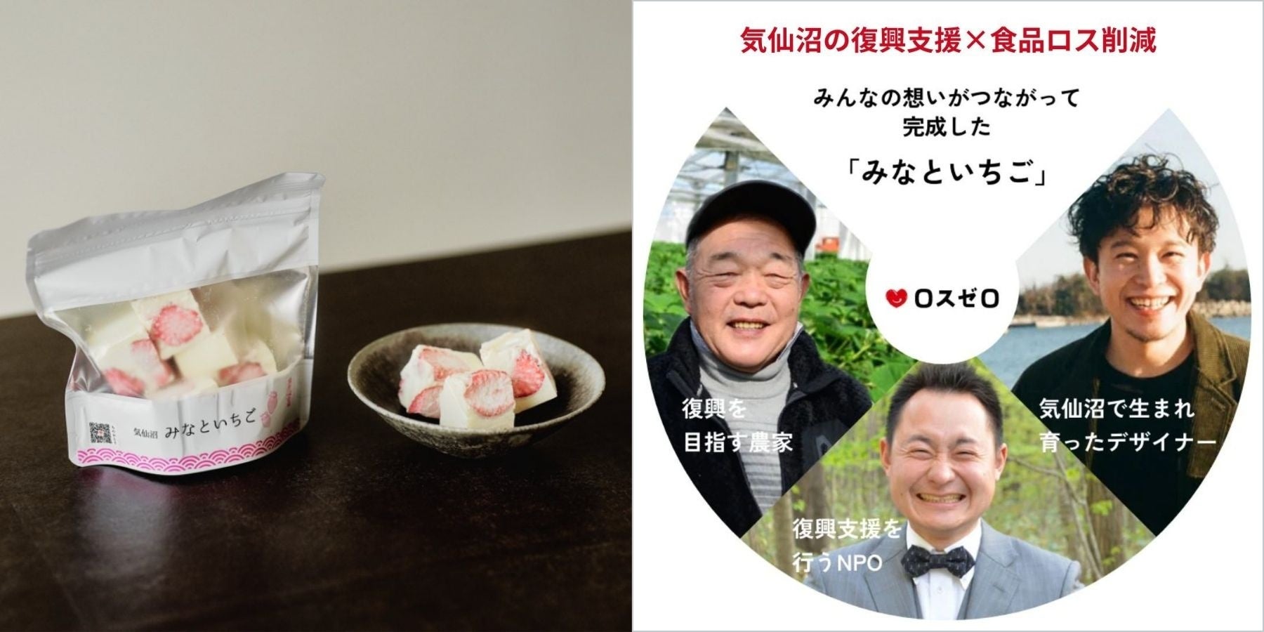 商品化されず廃棄につながっていた未利用原材料に新しい命を吹きこむアップサイクル食品開発事業は、「食べる理由がある」という意味を込めた独自のRe:You(りゆう)シリーズで展開。総販売数は22,000点を突破しています。開発過程では様々なセクターの強みを活かす形で協業、特に「気仙沼みなといちご」は、気仙沼のいちご農家、地域復興支援NPO、株式会社JTB、気仙沼在住デザイナーなどぞれぞれの強みとインパクトを最大化した商品になっています。百貨店の常設店舗での販売や、ふるさと納税の返礼品にも採択されるなど、継続的な販売促進につなげています。