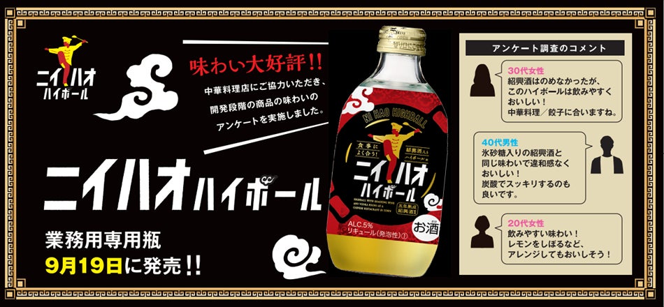氷の入ったグラスに注ぐだけ!!町中華を盛り上げる“紹興酒のソーダ割のお酒”「ニイハオハイボール」が新発売!