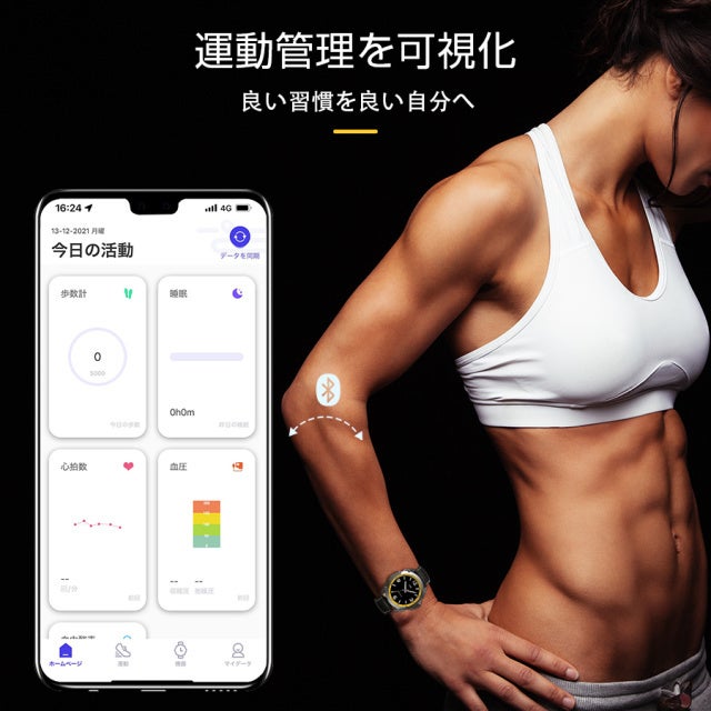 他にも歩数、心拍数、カロリー、その他たくさんの計測ができ携帯電話のアプリと連動することで、全てのデータ管理ができとても便利です。