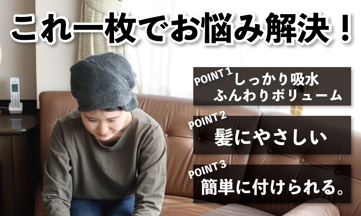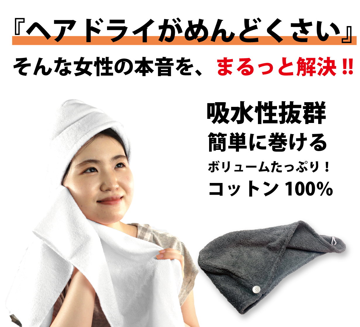 ロングでもショートでも使えるヘアドライ時短アイテム!ふんわり髪に優しい綿100%生地で髪をケア!