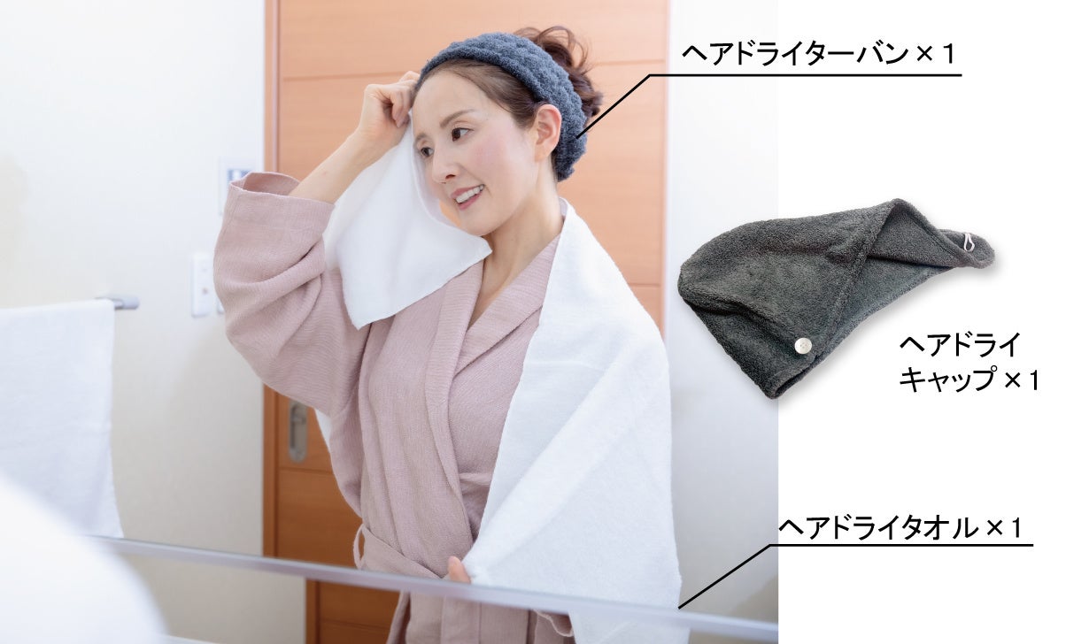 吸水性抜群なたっぷりボリュームの簡単装着ヘアキャップで、お風呂あがりのあの時間に「時短革命」を与えませんか?