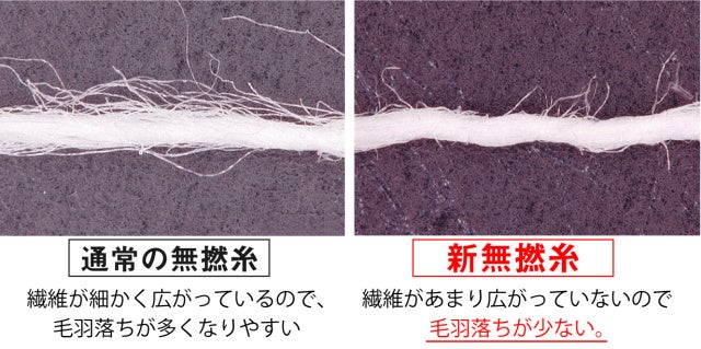 さらに、特殊な撚りがかけられていることで、通常の無撚糸と比べても、毛羽落ちが非常に少ないんです!!!