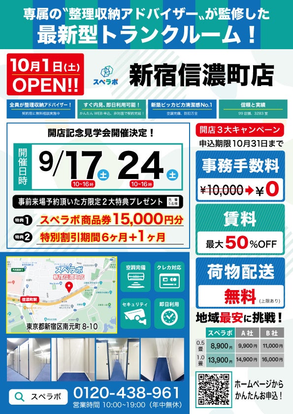 【10月1日(土)オープン】見学から契約、解約まで完全非接触・非対面、お申し込みからご利用まで最短1時間!都内にて絶賛運営中のトランクルーム【スペラボ】が新宿信濃町に出店!