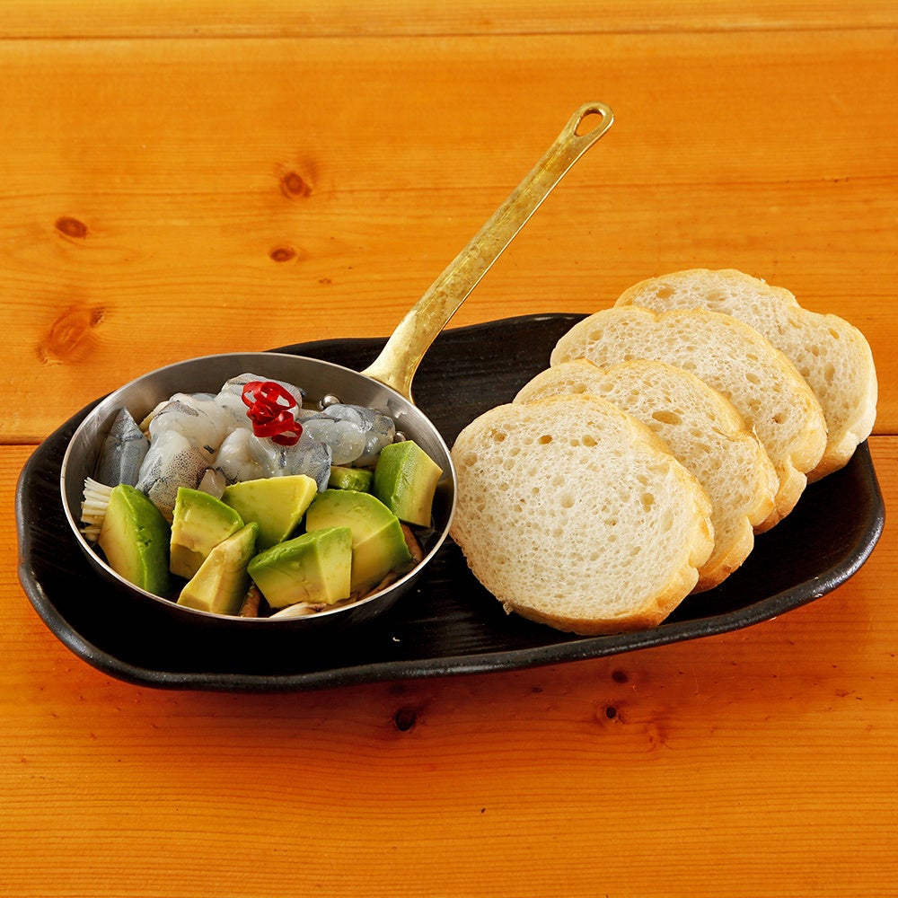 お好み焼きや鉄板焼きメニューも種類豊富。卓上の鉄板にてスキレットで仕上げる裏名物のアヒージョも必食。
