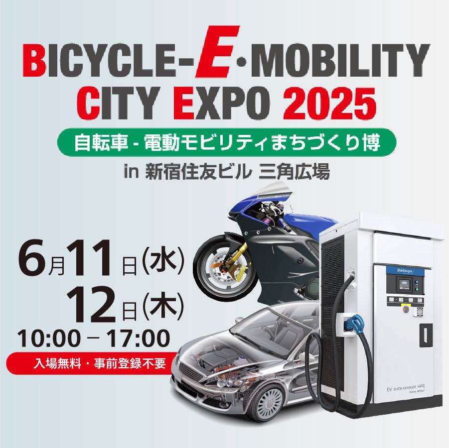 新電元工業株式会社は2025年6月11日(水)~12日(木)に開催される『BICYCLE-E・MOBILITY CITY EXPO 2025 〜⾃転⾞‒電動モビリティまちづくり博〜』(場所:新宿住友ビル 三角広場)に、EV充電器および電装製品の最新ラインナップを出展します。