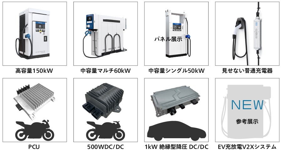 150kWのハイパワーEV急速充電器、充電器本体の存在を感じさせない「見せない普通充電器」、本展での当社初展示となる電装製品も!見どころ満載の新電元ブースでお待ちしております。