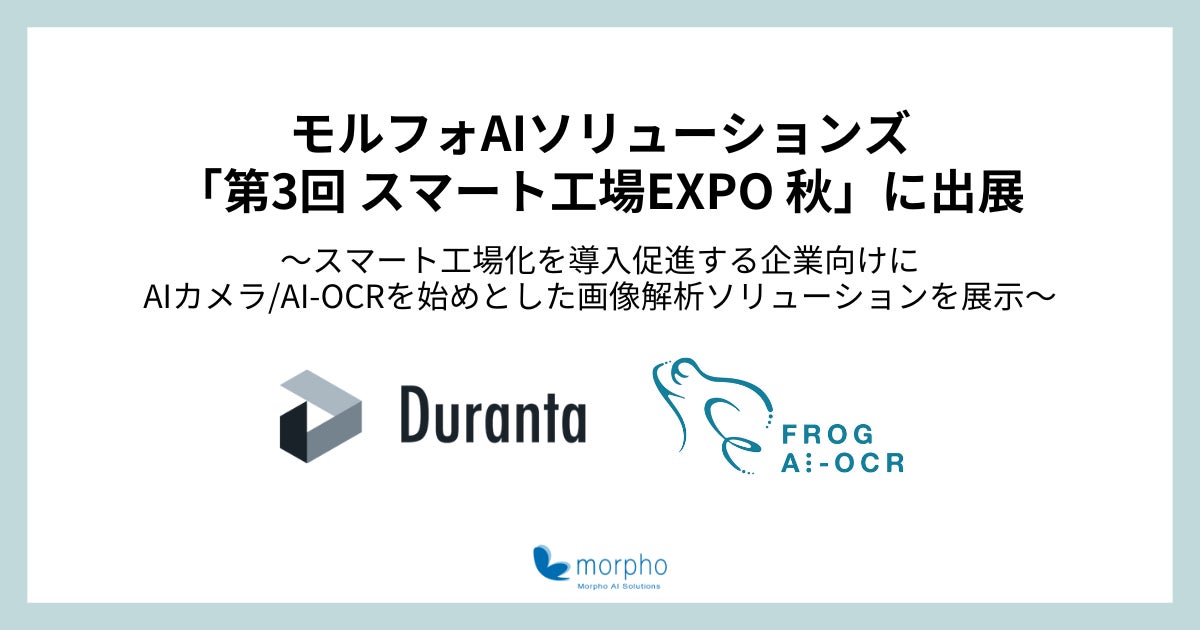 モルフォグループにおいてAIの事業化を担う、株式会社モルフォAIソリューションズ(所在地:東京都千代田区、代表取締役:神田武、以下 モルフォAIS)は、2024年9月4日(水)より幕張メッセで開催される「第3回スマート工場EXPO秋」(小間番号:12-36)出展します。