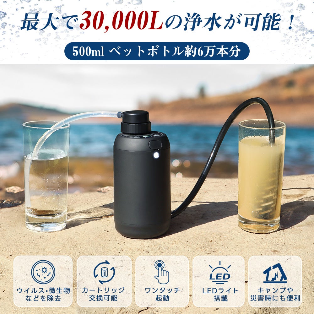 細菌99.9999%を除去するリチウム電池駆動型携帯浄水器