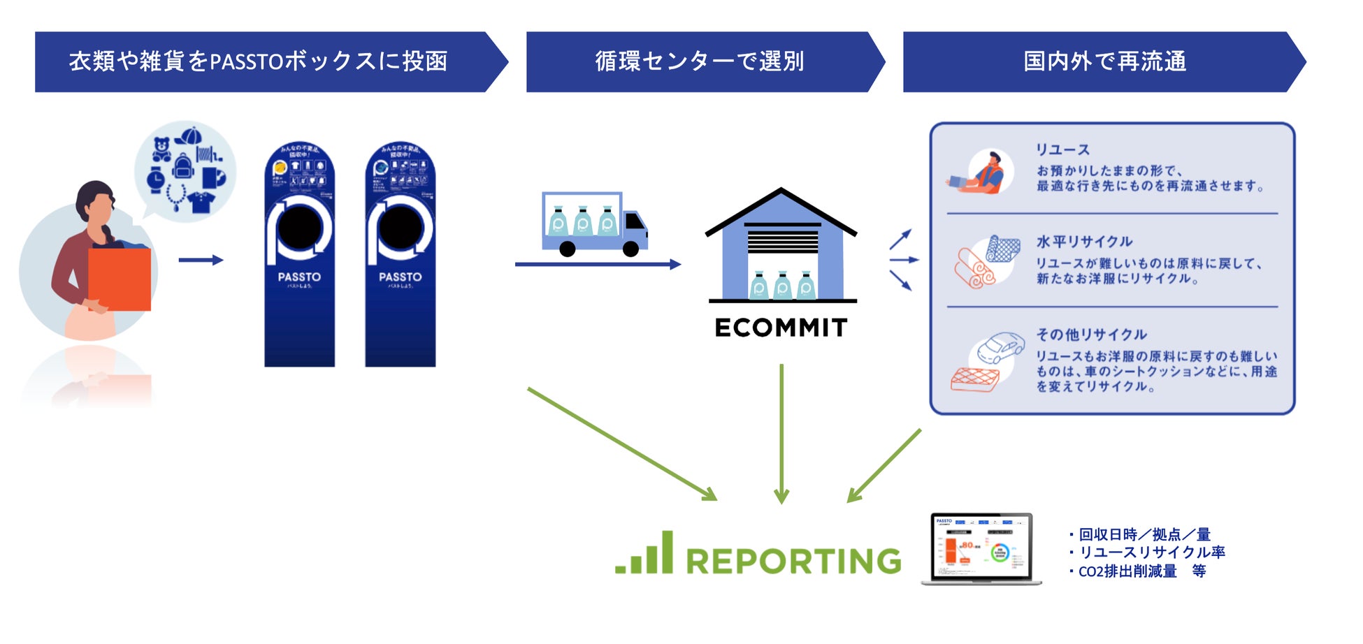 JR東日本スタートアップ株式会社(代表取締役社長:柴田裕、以下JR東日本スタートアップ)、株式会社ECOMMIT(代表取締役CEO:川野輝之、以下ECOMMIT)、Idein株式会社(代表取締役CEO:中村晃一、以下Idein)は駅を起点とした資源循環社会の実現に向けた取組みとして、ECOMMITが提供する資源循環サービス「PASSTO(パスト)」を設置し、衣類や雑貨の回収サービスを実施します。
