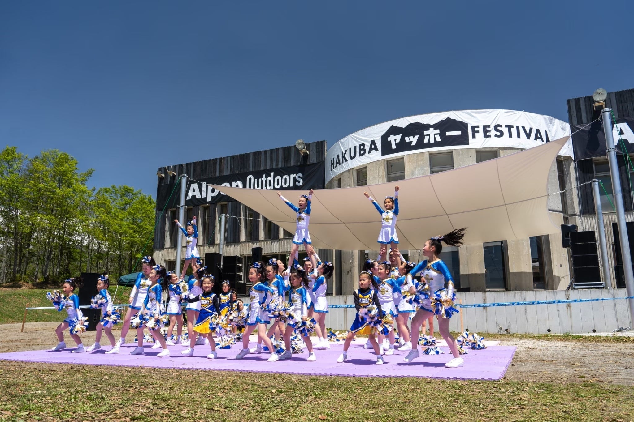 『アルペンアウトドアーズ プレゼンツ HAKUBAヤッホー!FESTIVAL 2026』の開幕を祝し、5月16日(土)・17日(日)にオープニングイベントを山頂特設ステージで開催します。地元白馬村・小谷村の信州小谷太鼓、テーマパークダンスチーム、チアリーディングチームが登場し、活気あるステージでフェスティバルの開始を飾ります。