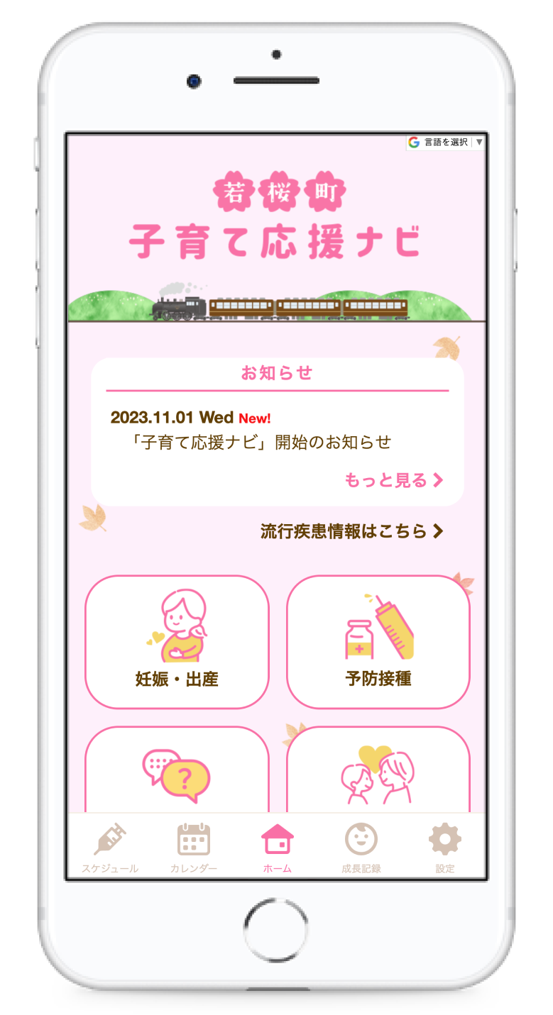 今後は、若桜町からのお知らせを月齢・年齢にあわせてタイムリーに受信できる「メール配信・プッシュ機能」、成長グラフや乳幼児健診の記録など母子手帳の内容をマイページに記録できる「電子母子手帳 機能」、予防接種漏れや接種間隔ミスを防ぐことができる「予防接種AIスケジューラー」、複数言語に対応する「多言語翻訳機能」など、ICTを活用した子育て世代への継続的なサポートを実現します。