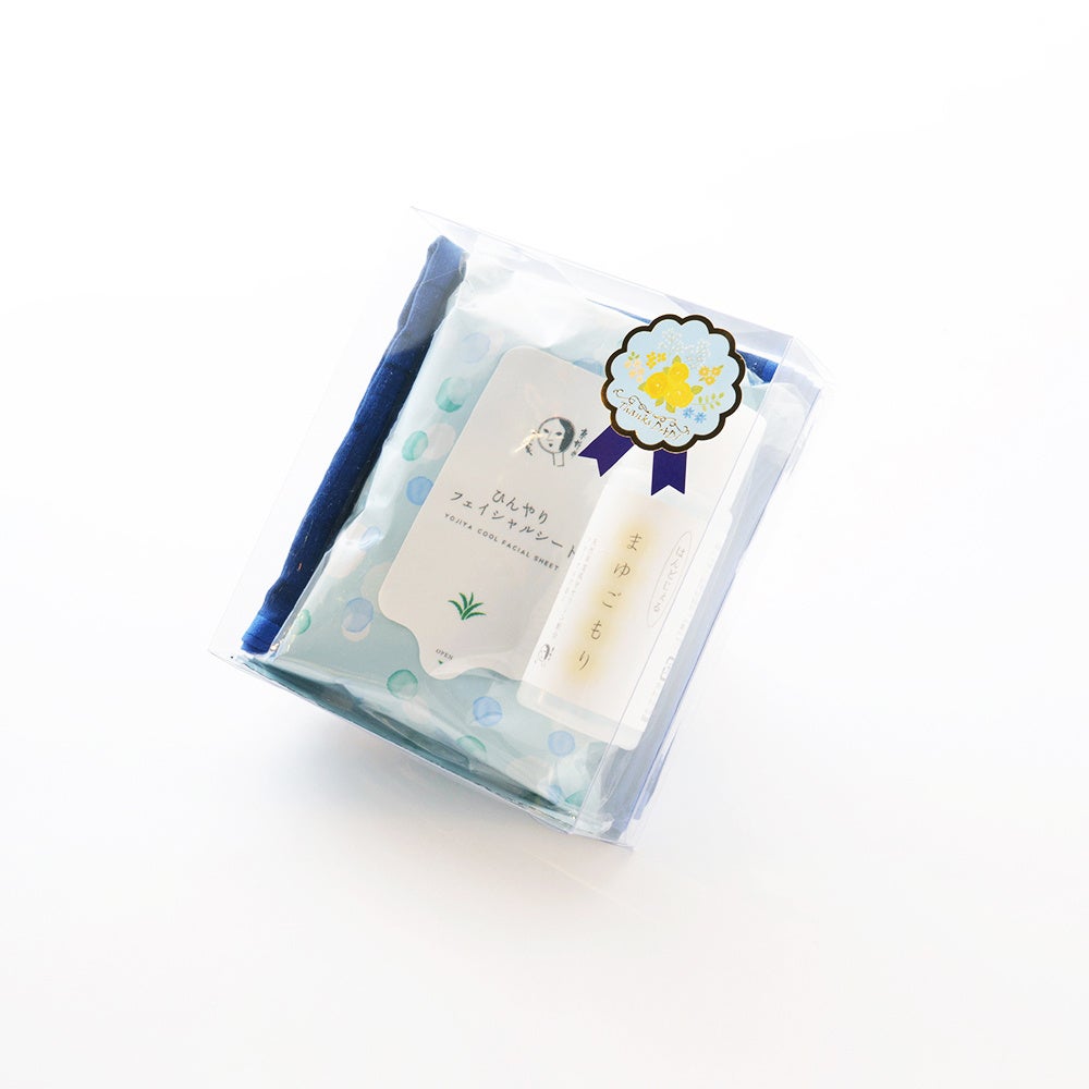 「まゆごもり」のほのかなフローラルの香りに包まれながら手指の消毒※ができる「まゆごもり はんどじぇる」。さらに今年の5月に発売した季節限定「ひんやりフェイシャルシート」の3点を限定パッケージに入れてギフトセットにいたしました。