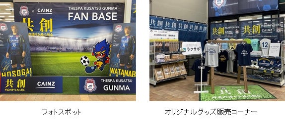 群馬県内 27 のカインズ店舗とカインズ本部では、2 月 1 日から 2022 年新シーズンの事前プロモーションとして、店頭でののぼり、横断幕、選手ボードの掲出や、ザスパオリジナルグッズの販売を行っています。またカインズスーパーセンタ― 前橋吉岡店では、常設している FANBASE を 4 月 22 日(金)にリニューアルし、新たにフォトスポットを設置いたしました。店舗に来店されるお客様にも気軽にザスパの魅力に触れていただける取り組みを、これからも進めていきます。
