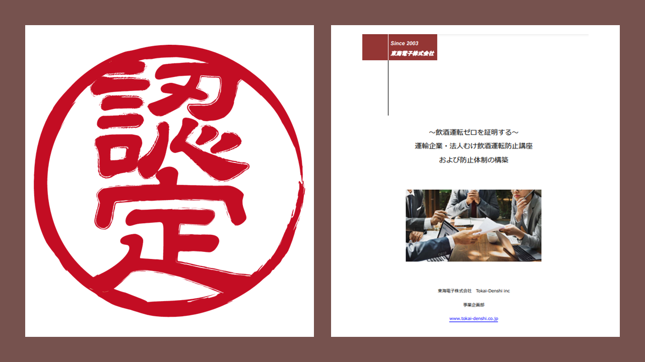 IT点呼システム及び運行管理システム及び業務用アルコール検知システムを開発・販売する東海電子株式会社(本社:静岡県富士市 代表取締役:杉本 哲也)は、この度、令和4年度国土交通省の事故防止対策支援事業の教育メニューに、当社の飲酒運転防止体制の構築支援サービスが認定されましたことをお知らせ致します。