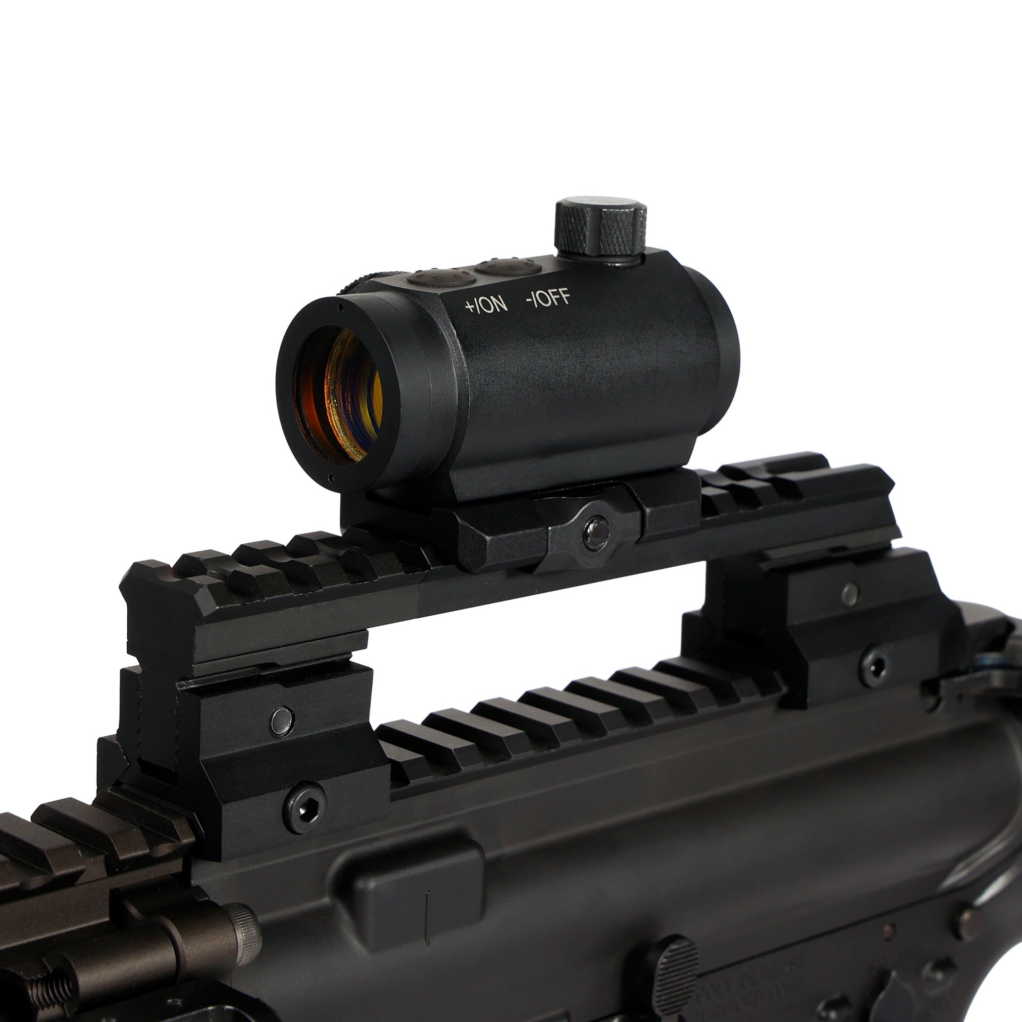 本製品は、ピカティニーレイル対応の銃へ装着可能なハイマウントレイル。