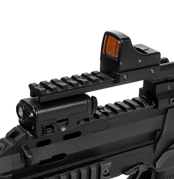 運用にあわせて組み換えることで、光学サイト搭載位置や重量バランスを柔軟に調整可能です。サバゲーにおける瞬時のサイト切替や、屋内・屋外フィールドでの使い分けにも最適です。