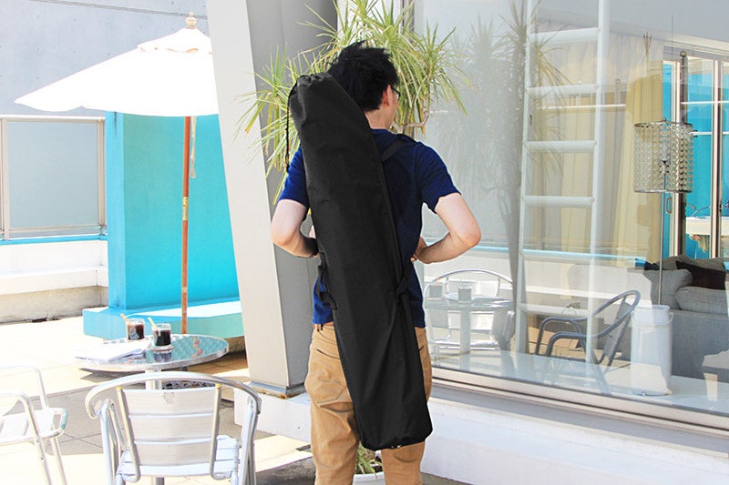 スタンドを折りたたんでハンモック&チェア用生地を入れ、リュックのように持ってお出かけができます。
