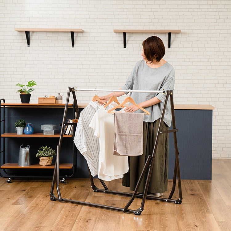 付属のハンガーロットをスタンドに掛けると、ハンガーラックとしてご使用いただけます。