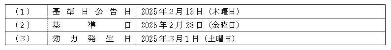 2024年12月16日に開示しました「株式分割及び株主優待制度の変更に関するお知らせ」の下記スケジュールどおり進行いたします。