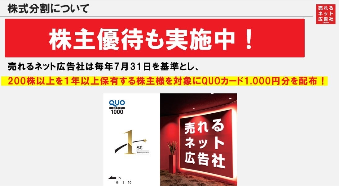 売れるネット広告社グループ『株式分割』に関するお知らせ