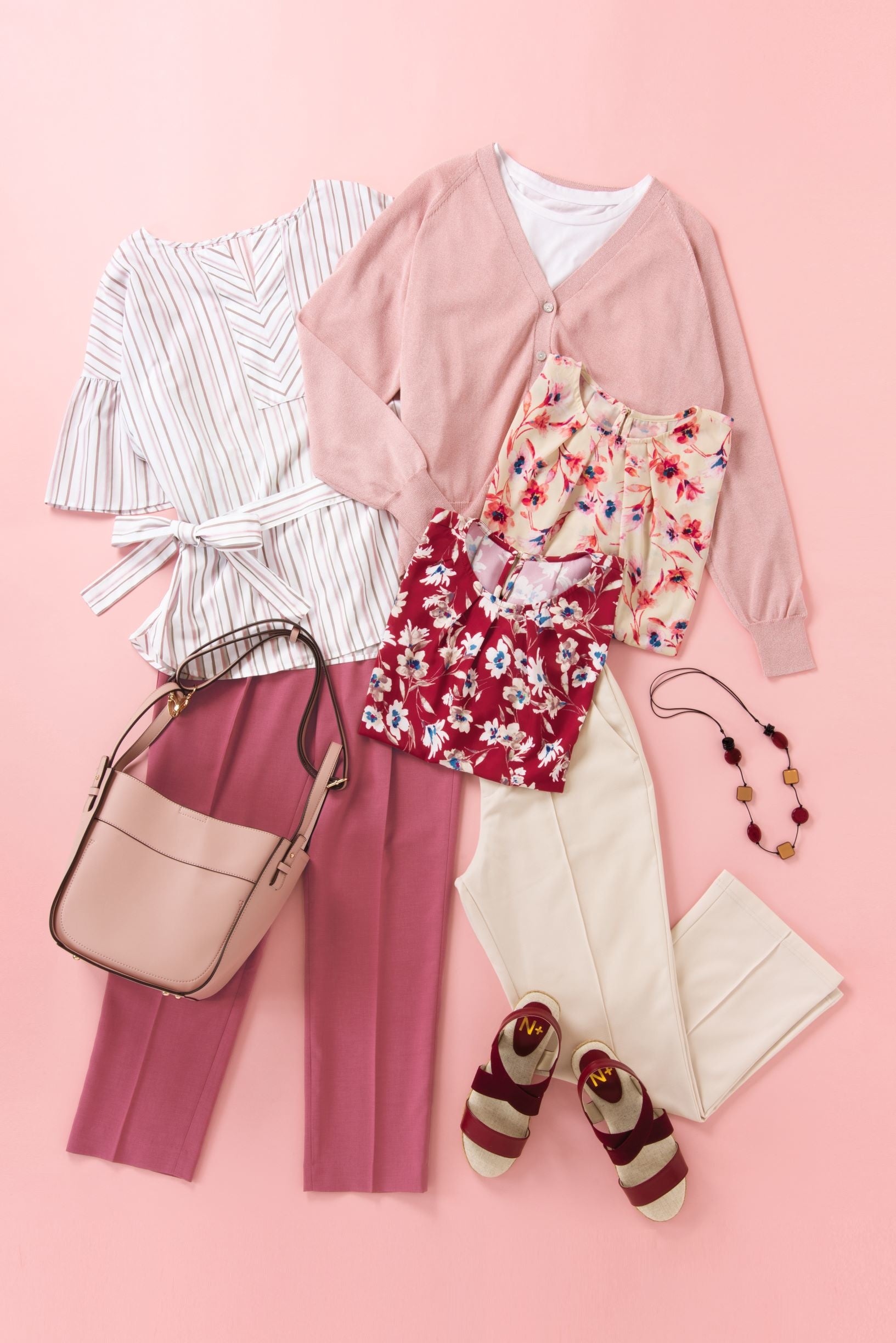 色と柄がつながり、いろいろな組み合わせを楽しんでいただけるようなコーディネートを提案しています。