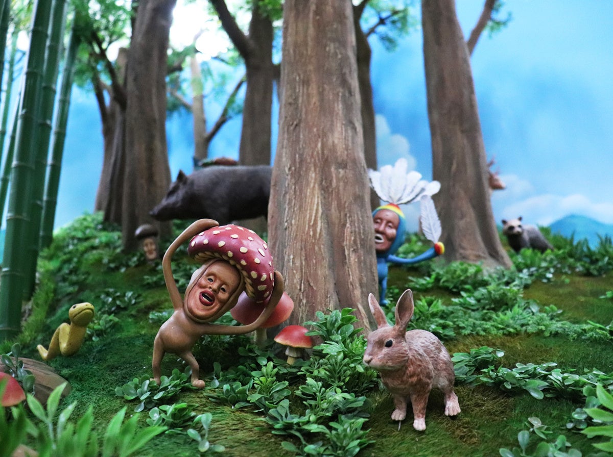 大生態図(『新種発見!こびと大研究』収録)のイラストを全長約3mの巨大ジオラマで再現