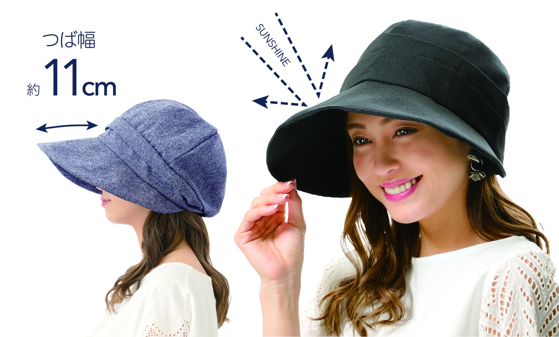 UVカット率99%!大きなつばでしっかり日差しカット!小顔に見えるUVキャスケット