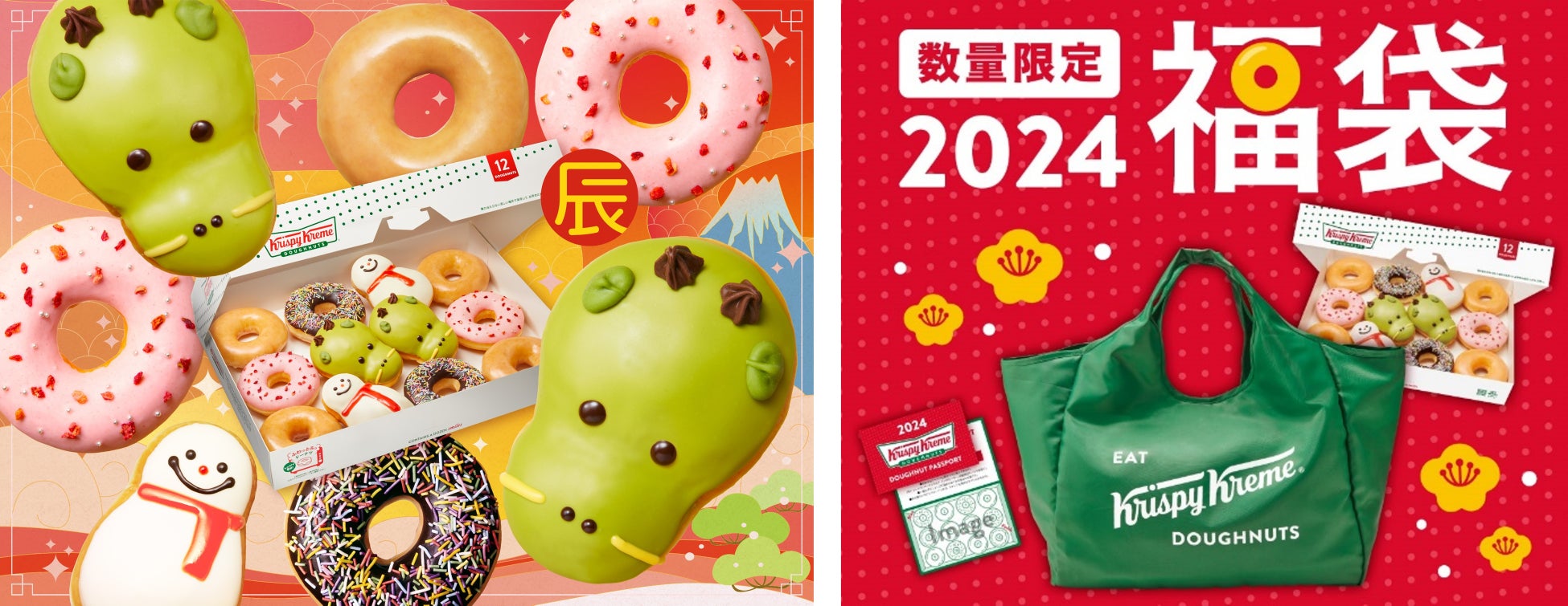 『フォーチュン 干支 ダズン (12個)』 【販売期間】 2023年12月26日(火)~2024年1月16日(火) 【販売価格】 2,916円(イートイン2,970円) 幸運を運ぶドラゴン カスタード、笑顔を呼び寄せるハッピー ストロベリー リング、 冬の人気者チョコレート スノーマン。 定番のチョコ スプリンクル、オリジナル・グレーズド®が新しいラッキーを届けます。 大切な家族や友達と新年をお祝いする12個入り。 |