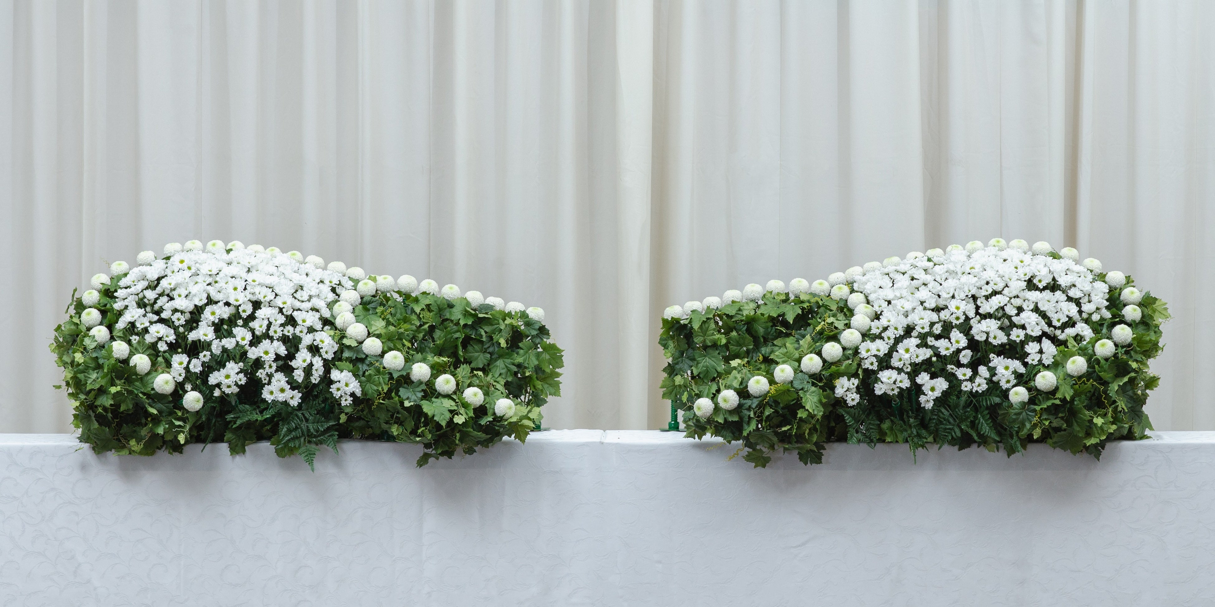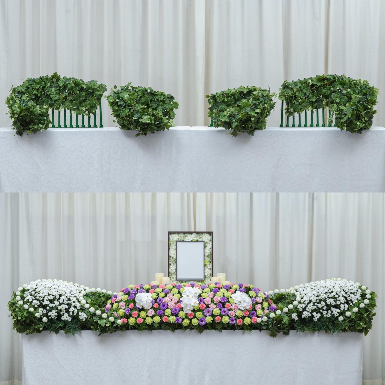 4)祭壇中央にtypeH(旧「だれdemo花祭壇」)を組み合わせると、ライン祭壇が完成。