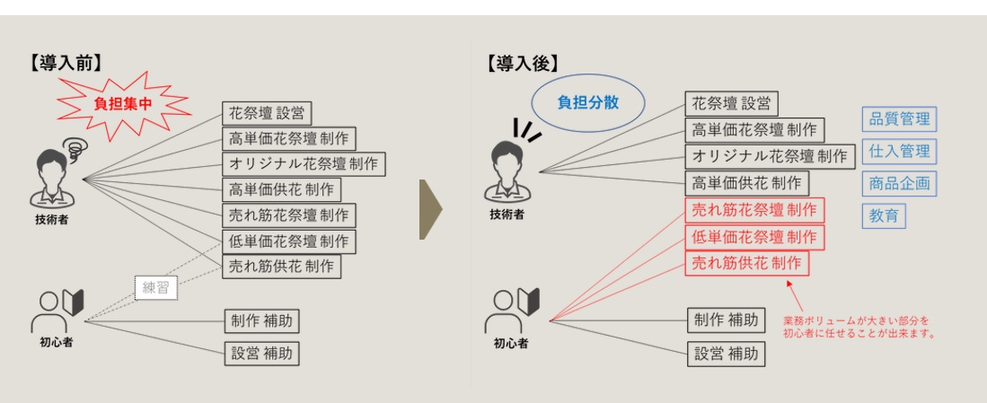 制作時間を大幅短縮することで、人手不足や過重労働の解消が見込めるとともに、フローラルフォームの代わりに活用することで、石油由来資材の使用・廃棄量を減らし、二酸化炭素の排出量削減にも貢献します。