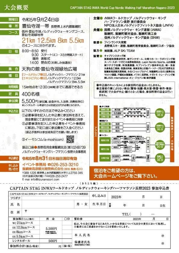 「CAPTAIN STAG INWAワールドカップ ノルディックウォーキングハーフマラソン長野2023」チラシ
