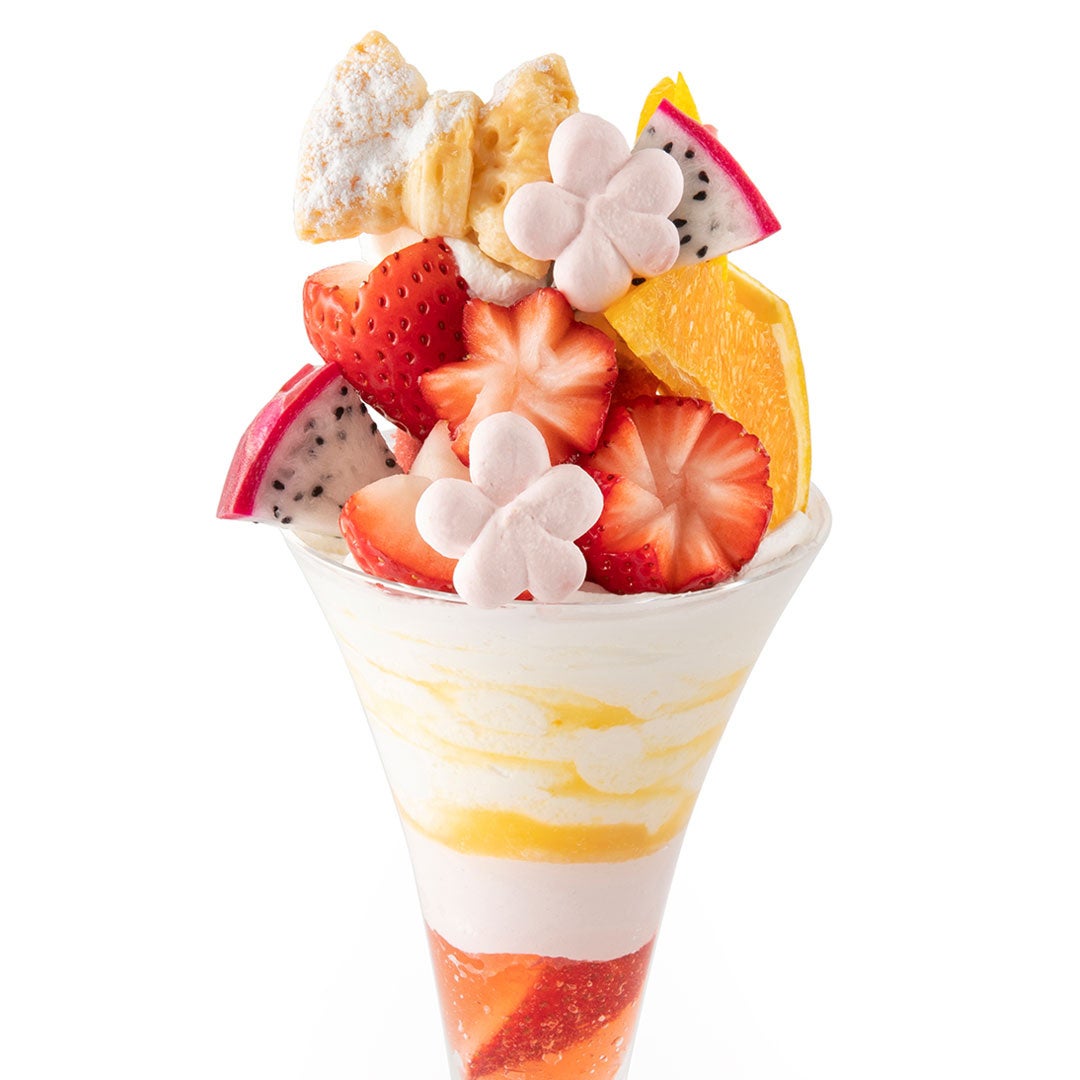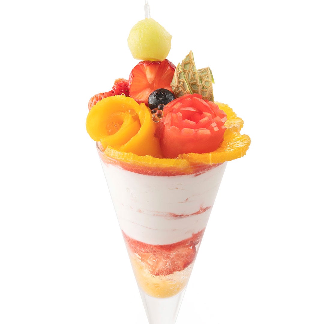 「母の日」までご提供するパフェは全9種類。店舗ごとに異なるパフェは、デザインやフルーツの種類も様々で、どれもフルーツブーケのような華やかさで仕立てています。