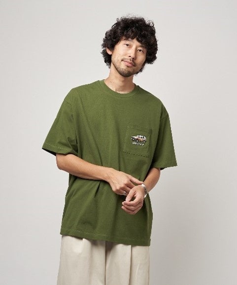 60シリーズのデカールデザインを細部まで表現した大きめの刺繍が目を引くポケット付きTシャツ。ボディカラーはランドクルーザーらしいアースカラーでの展開です。
