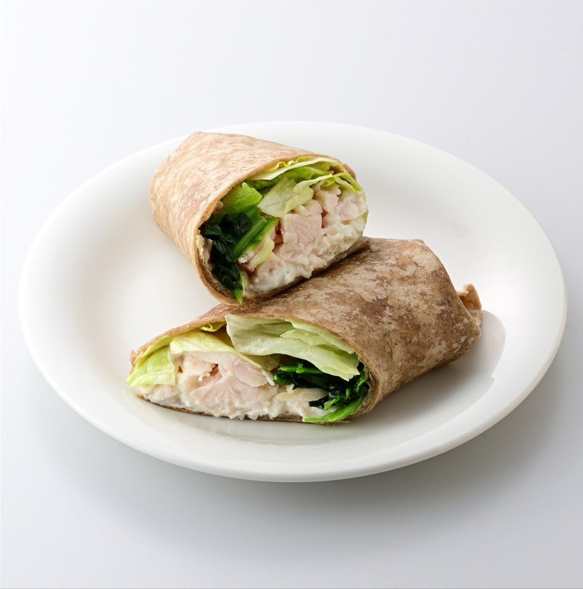 ・たんぱく質が15g摂れるしっとりチキンと5種豆のラップサンド 590円(税込)