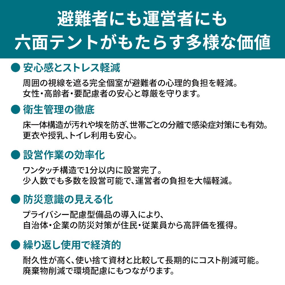 六面一体による密閉構造で避難所生活におけるプライバシー空間を確保!防災用 六面一体型テント 新発売のお知らせ